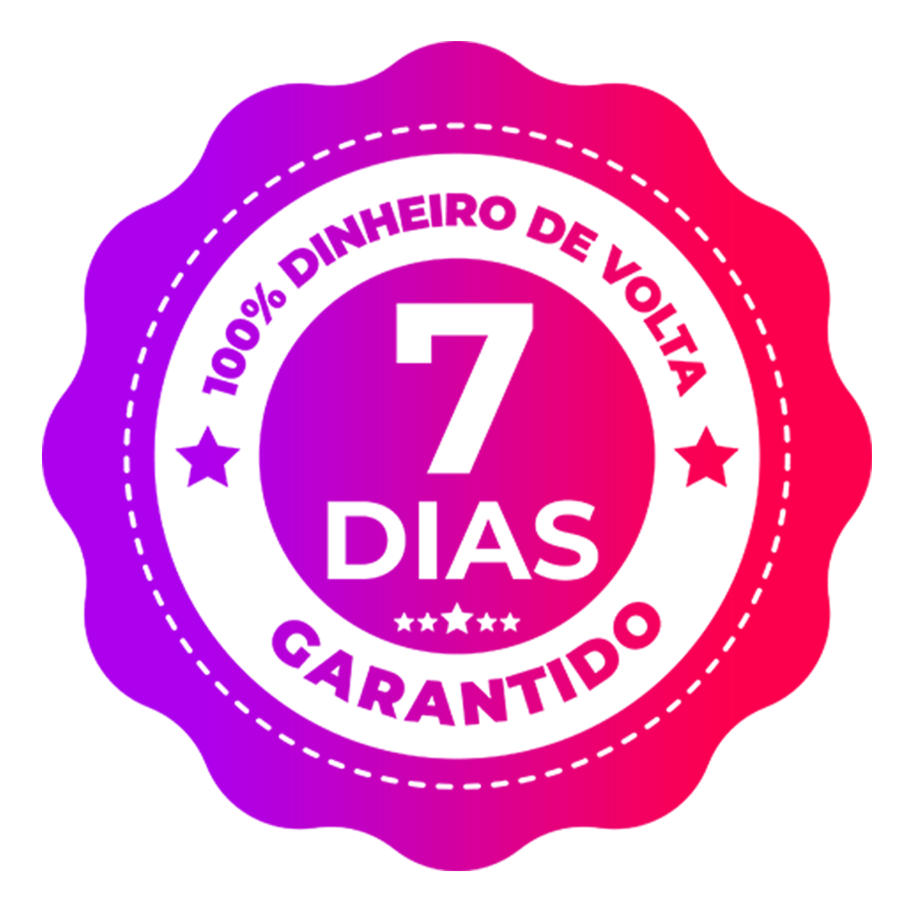 E para que você se sinta ainda mais seguro(a), oferecemos garantia de 7 dias. Se dentro desse período você perceber que o conteúdo não atendeu às suas expectativas, devolvemos 100% do valor pago, sem burocracia.