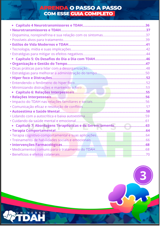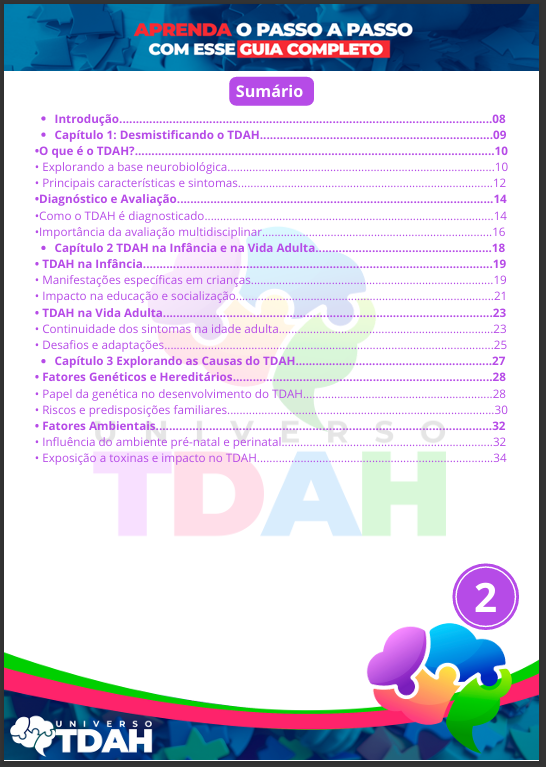 Você vai receber cesso ao guia completo ensinando tudo sobre o univero TDAH